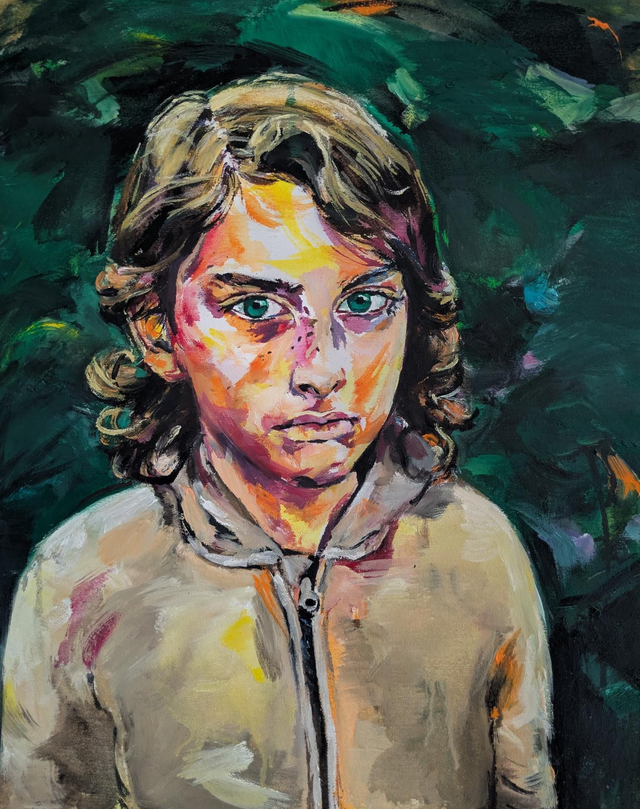 Écolier par Maria Ducasse, 61x50 cm, huile sur toile 2025