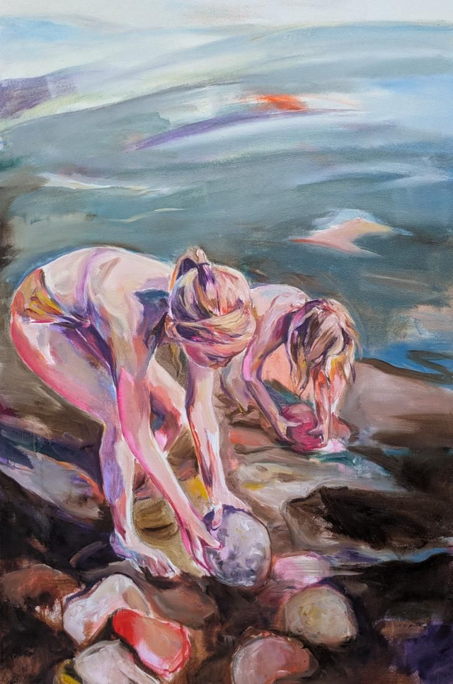 Trésors, par Maria Ducasse, huile sur toile 2024, 130 x 87 cm